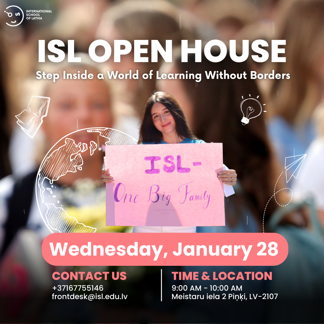 At the International School of Latvia we understand that when you are choosing a school, you are looking for the best fit for your whole family. That is why ISL is happy to open its doors and welcome families who like to see and feel the school, before applying. Our Open House is a wonderful opportunity to meet with our team, explore our campus and experience a regular school day at ISL. We look forward to you joining us at our next open house and see firsthand how we are an excelling community school where everyone is included, respected, and appreciated.
